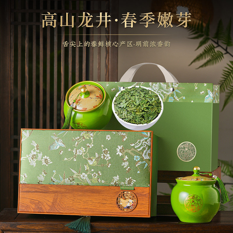 天洲溪正宗明前龙井茶陶瓷高档茶叶礼盒装送人送长辈新年礼盒绿茶