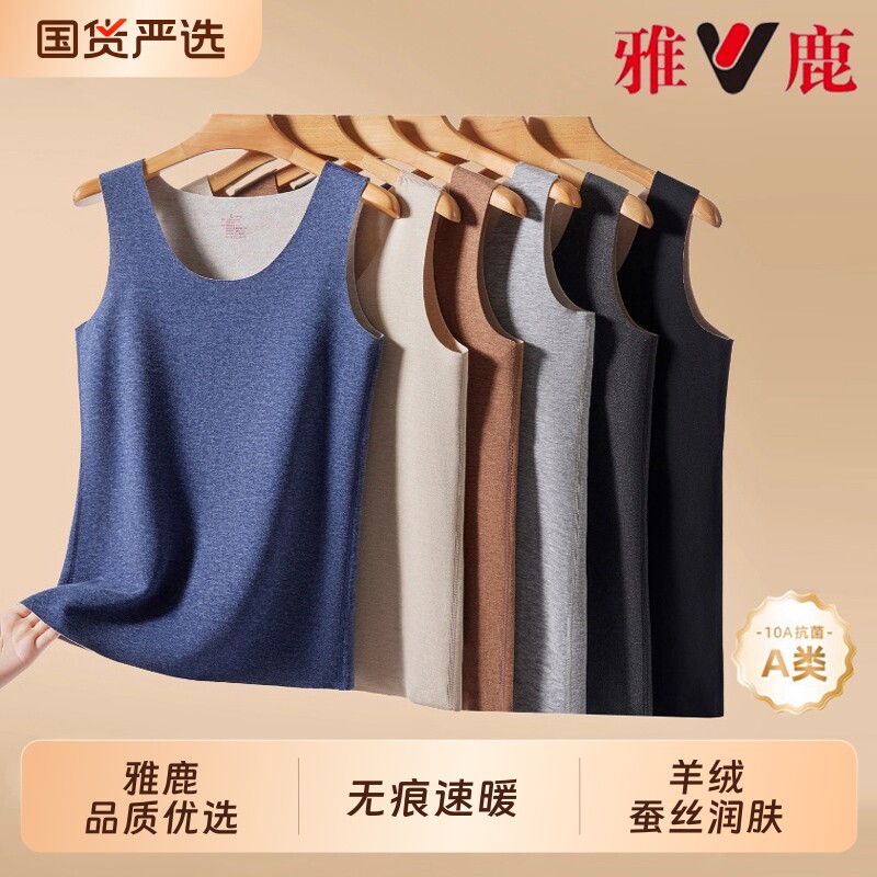 雅鹿男士保暖背心男款无痕打底衫内搭防寒羊绒蚕丝发热上衣冬季