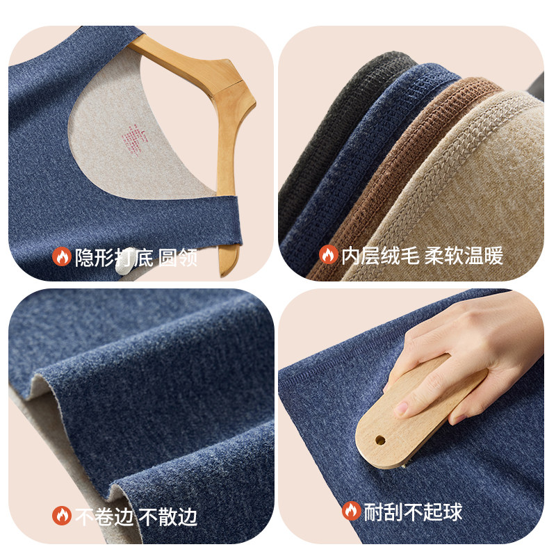 一体绒保暖背心女士贴身加绒加厚秋衣冬季无痕打底棉毛衫单件上衣
