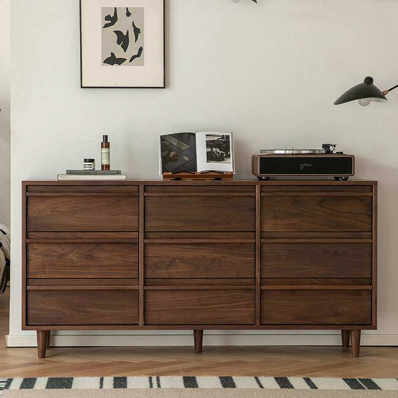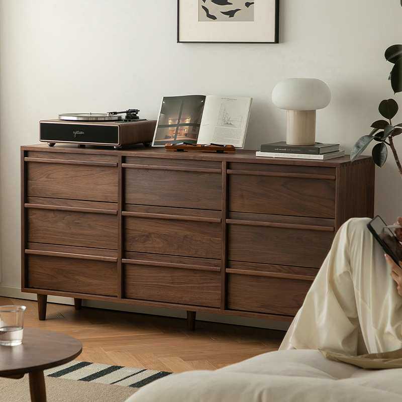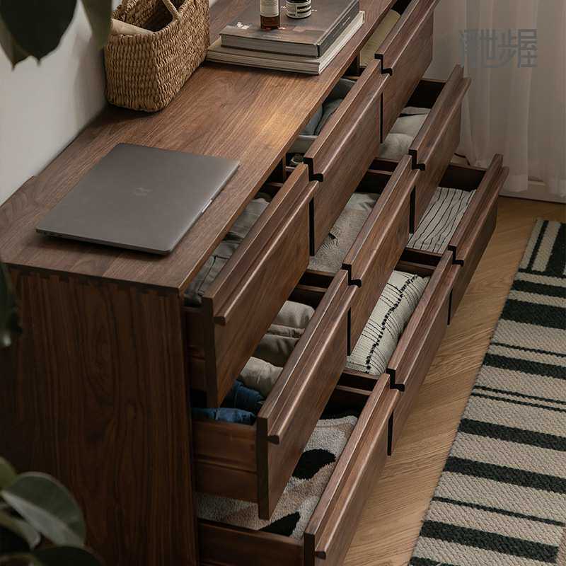 崇匠家具北美黑胡桃木九斗柜卧室客厅储物收纳家具实木靠墙床尾柜