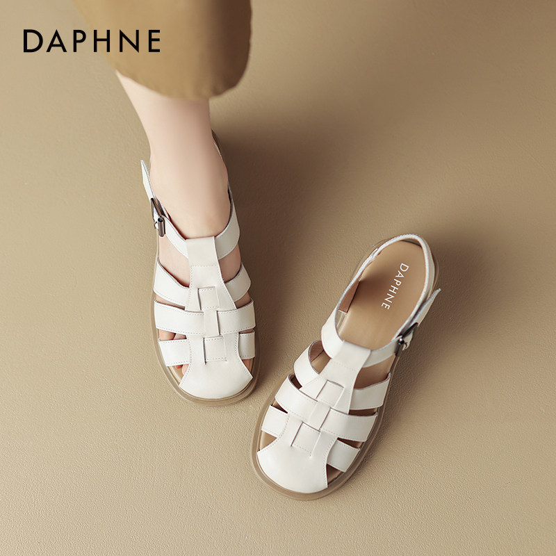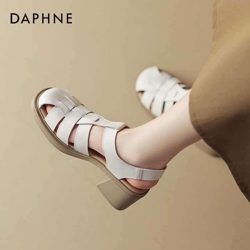 达芙妮罗马凉鞋女款2025新款夏季粗跟镂空猪笼鞋包头鞋子高跟女鞋