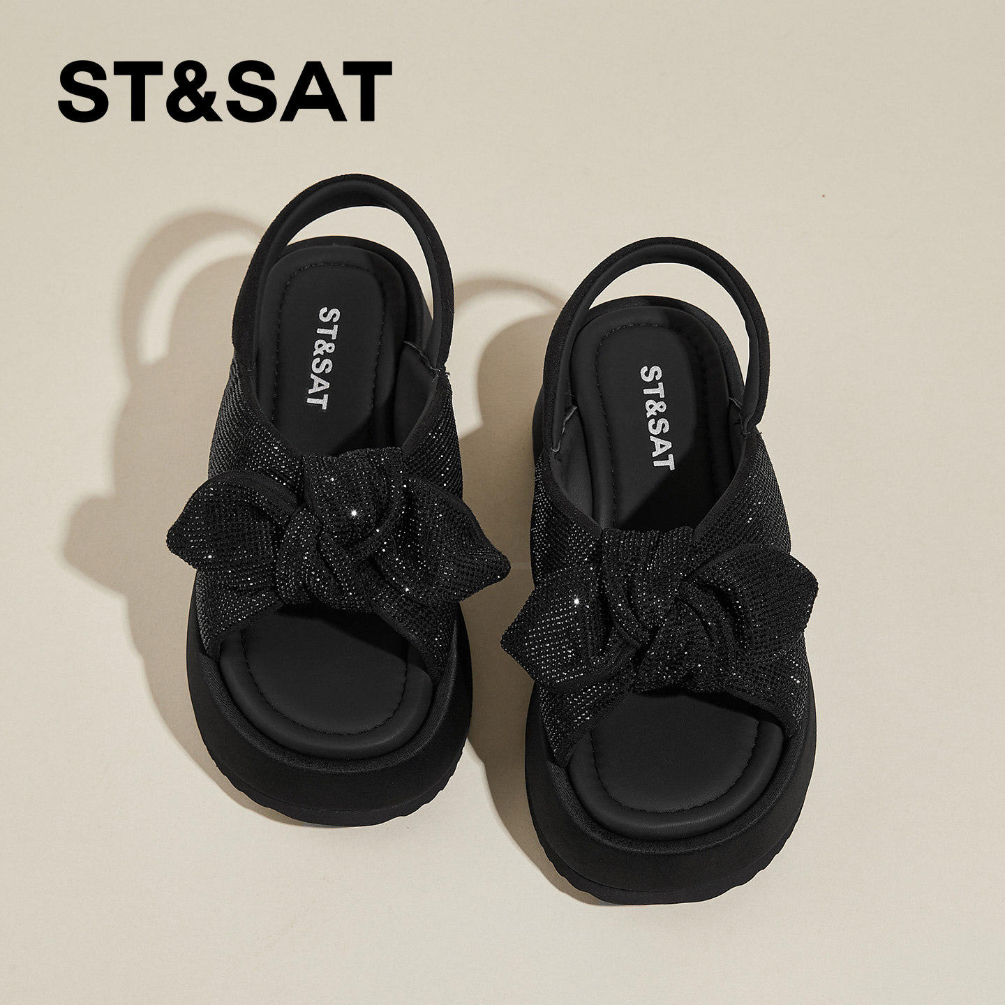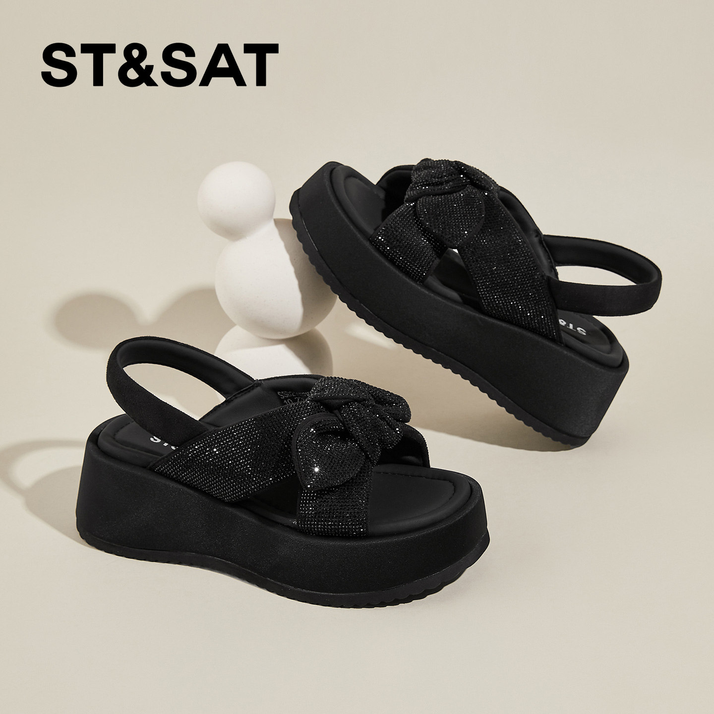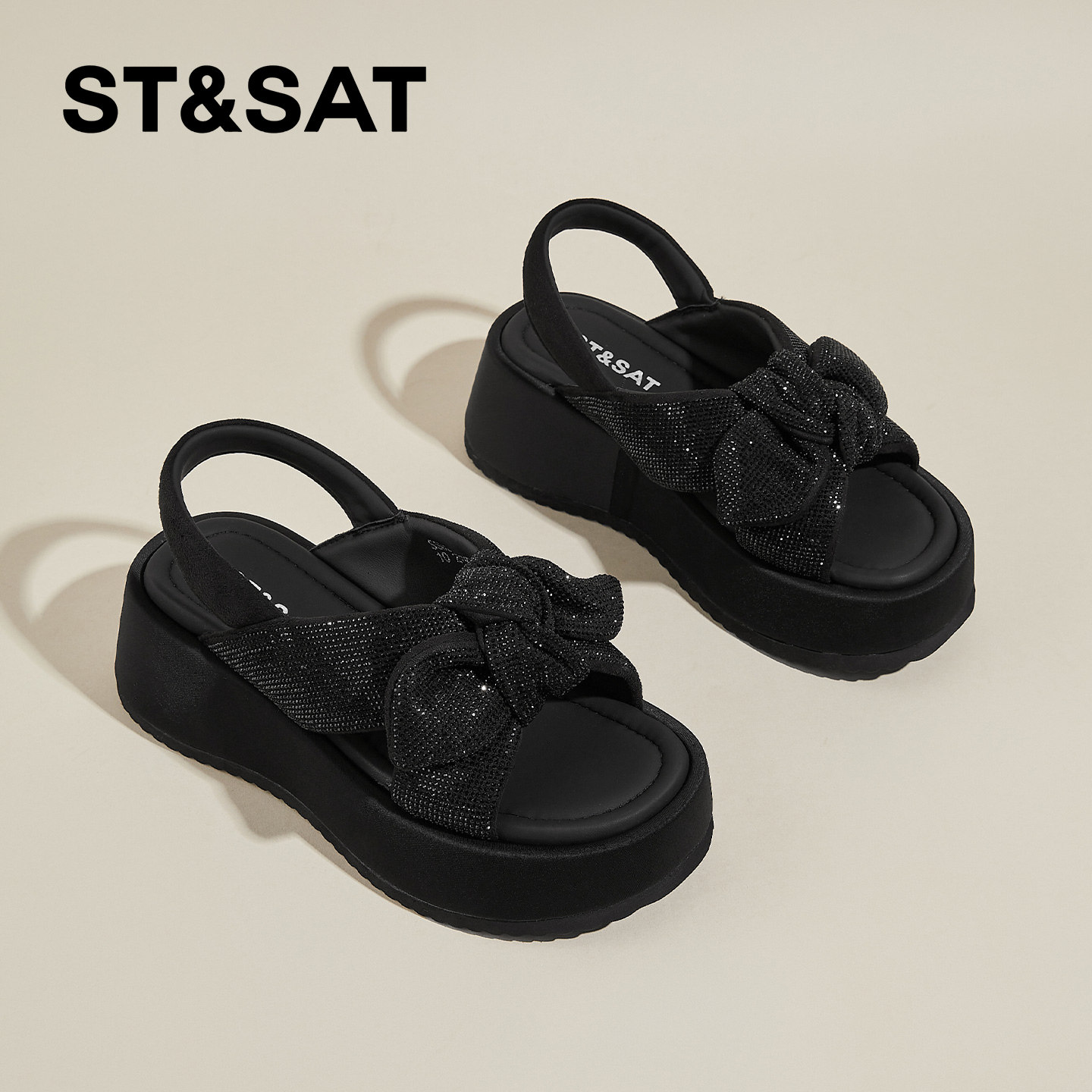星期六软底黑色一字凉鞋女夏外穿新款厚底松糕鞋小个子增高沙滩鞋