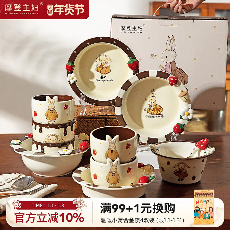 摩登主妇赫拉兔餐具乔迁新居新婚订婚生日礼物碗碟碗盘装套装家用