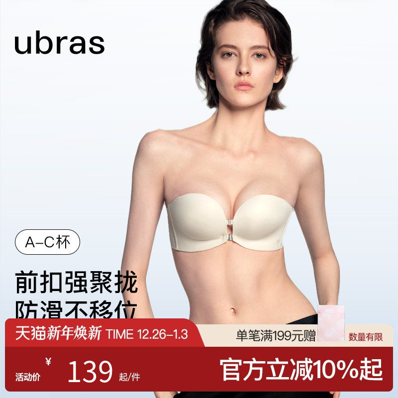 ubras前扣抹胸夏季凉感无肩带内衣女防滑聚拢裹胸无痕隐形文胸罩