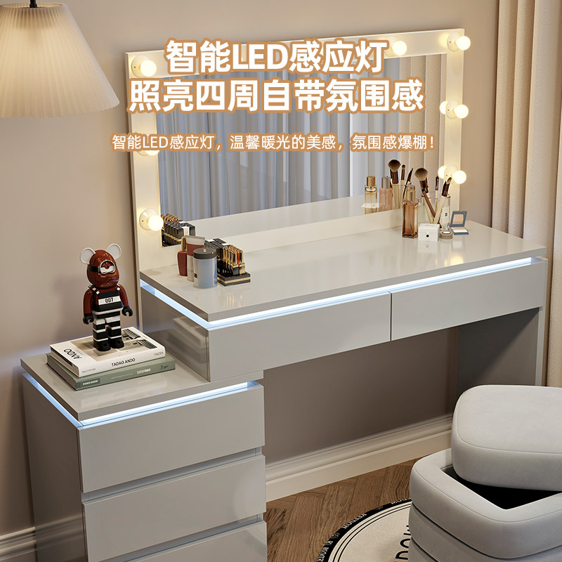 2025新款氛围灯梳妆台卧室现代简约实木化妆桌床头收纳柜斗柜一体