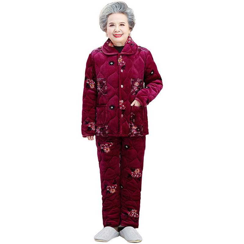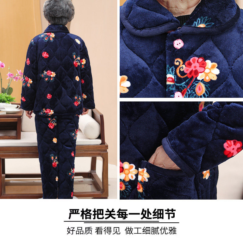 中老年人秋冬装加绒家居服套装奶奶加厚睡衣棉服妈妈棉衣外套女冬