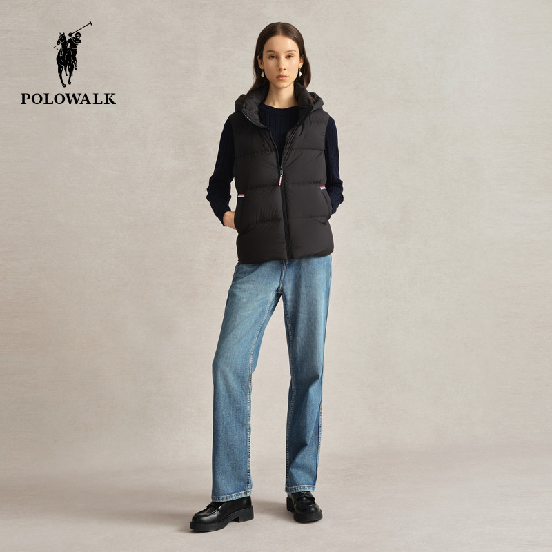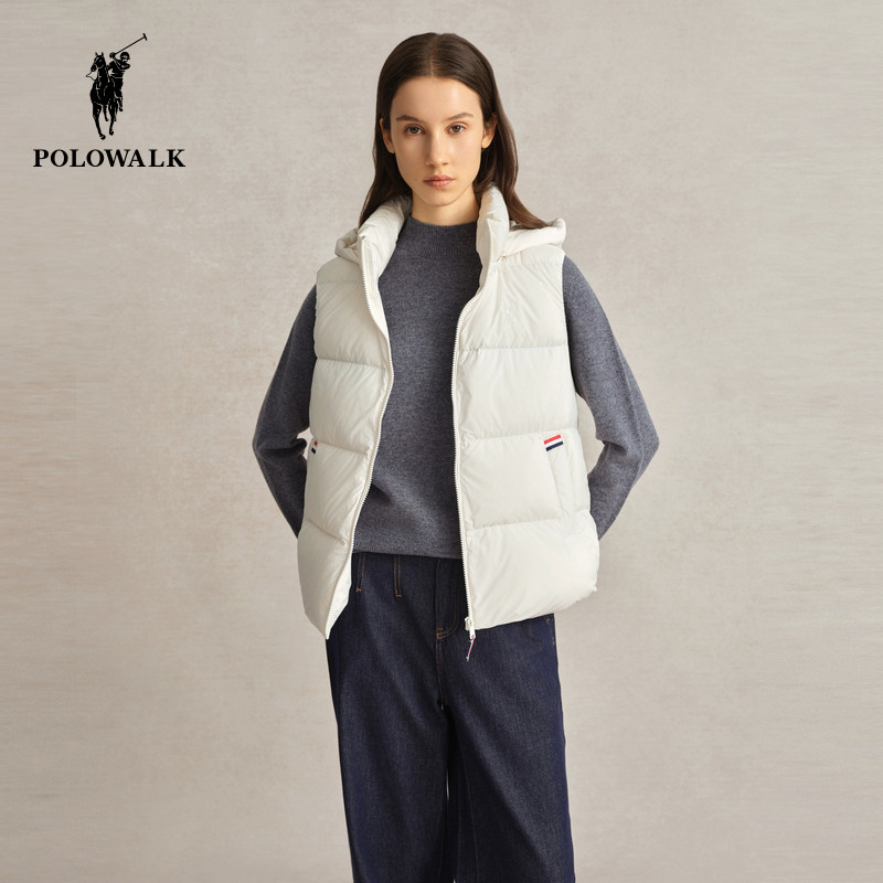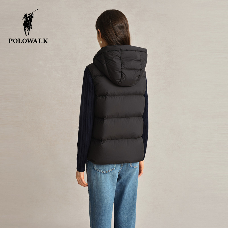POLOWALK女装羽绒马甲冬装90绒连帽保暖纯色百搭羽绒背心女士外套