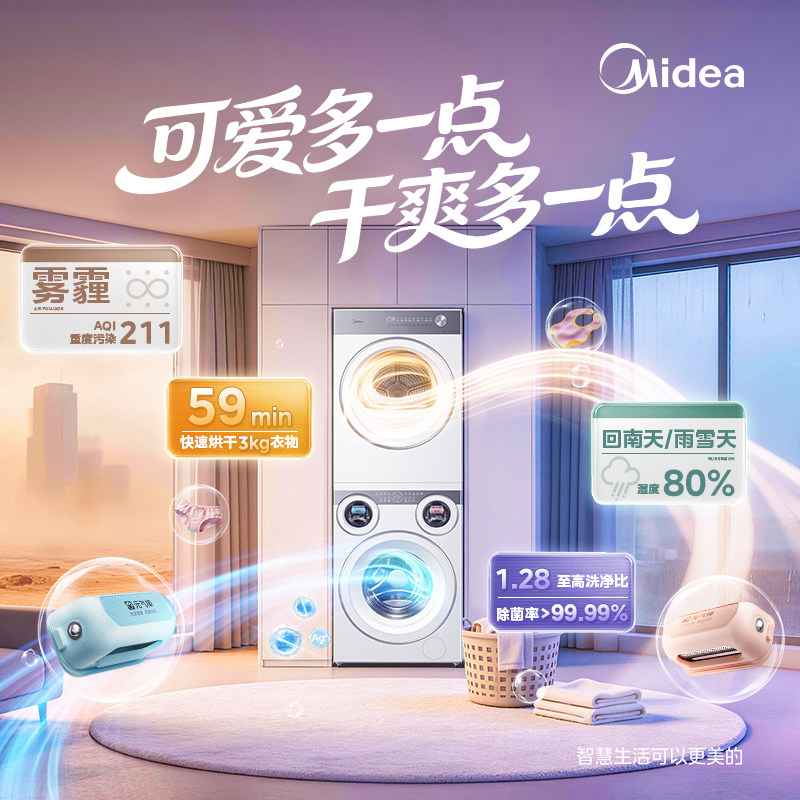 【全民补贴】美的可爱多懒人洗衣机热泵烘干机三筒分区洗烘套装