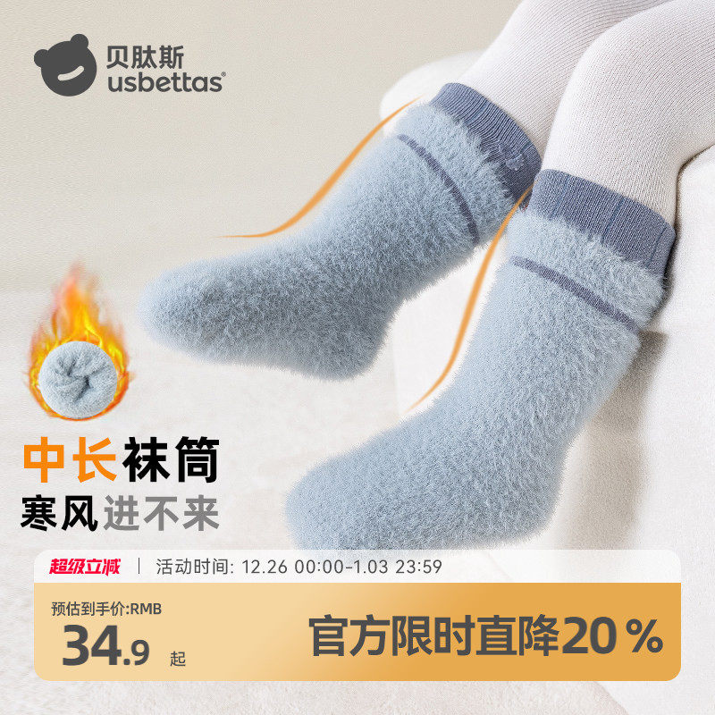 贝肽斯婴儿袜子冬加厚宝宝女童男儿童婴幼儿冬季中筒厚保暖加绒S