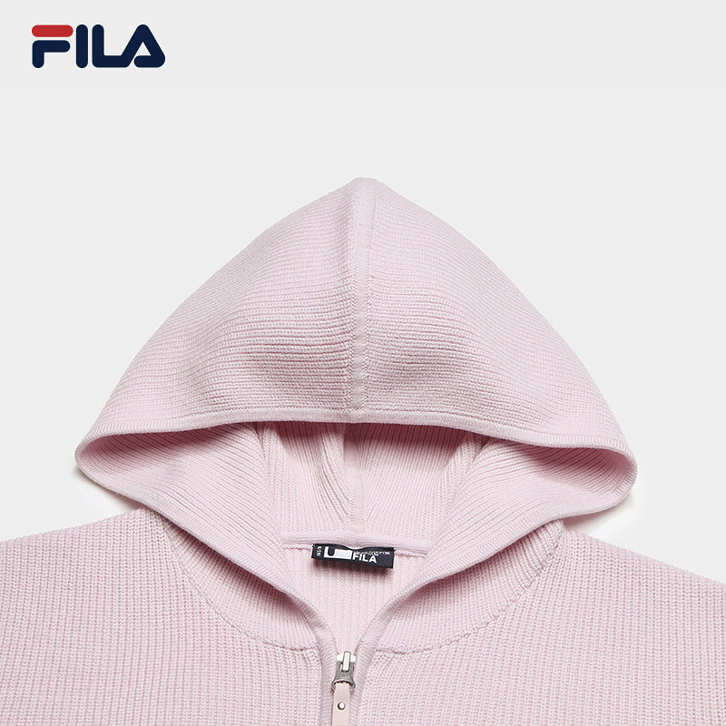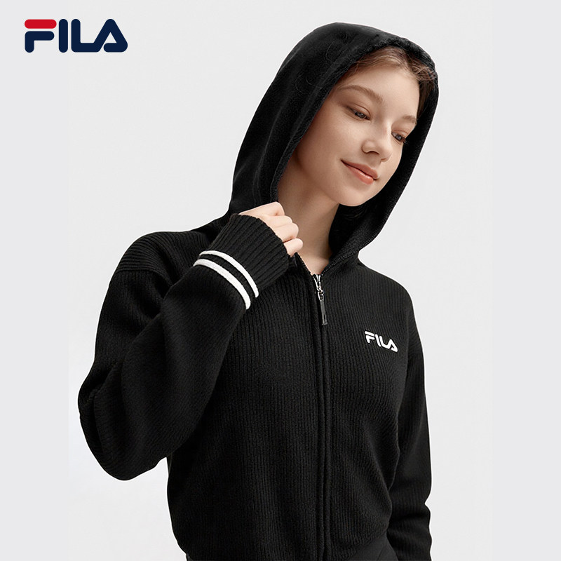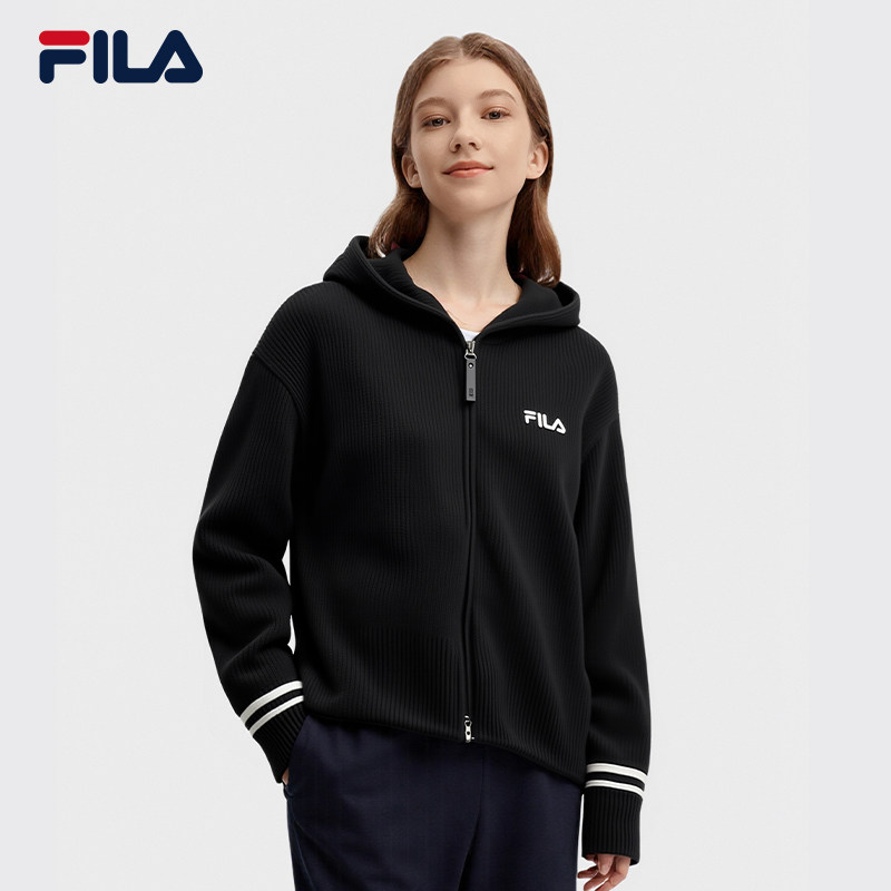 FILA斐乐官方长袖编织衫女冬季新款保暖宽松上衣休闲拉链毛衣外套