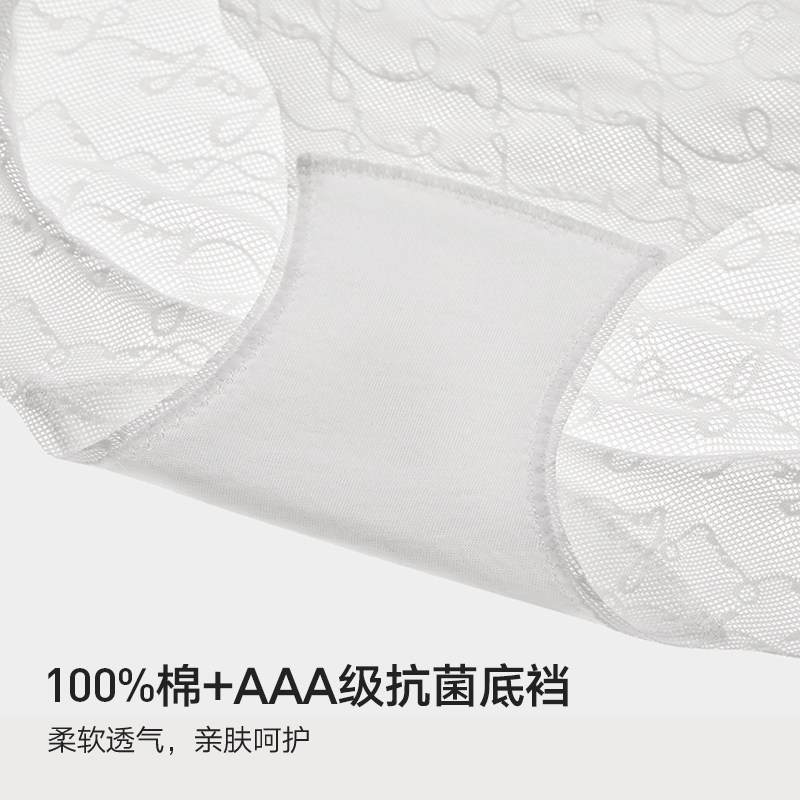 兰卓丽自由心动无痕蕾丝撞色内裤女士中低腰抗菌纯棉底档平脚裤