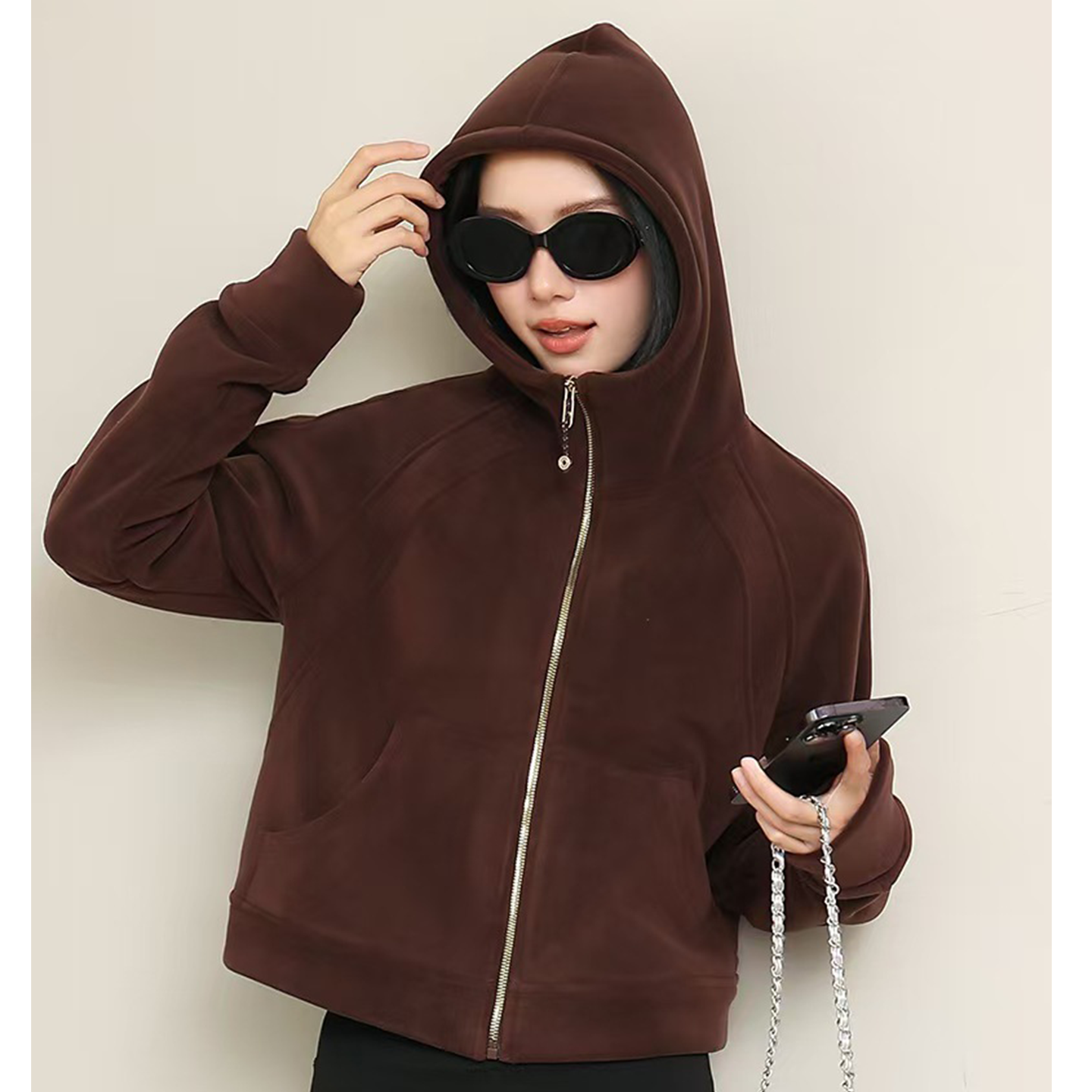 2025秋冬季加厚奥粒绒休闲短款拉链开衫小个子运动连帽卫衣外套女