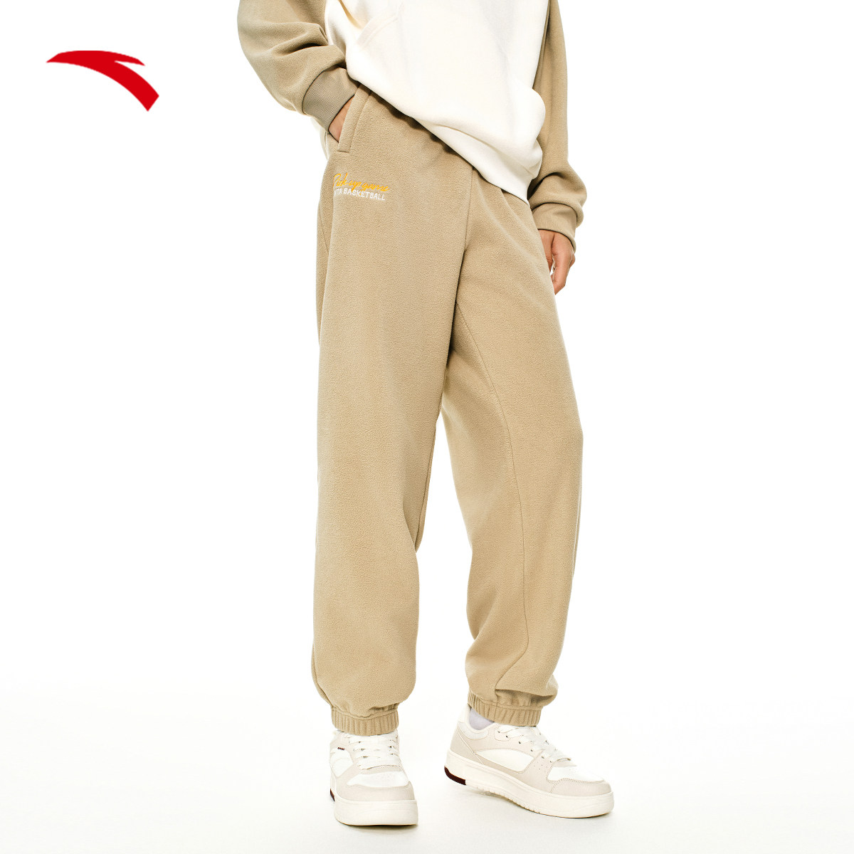 安踏奶芙裤丨运动长裤女裤冬季加绒黑色针织裤休闲跑步收口卫裤子