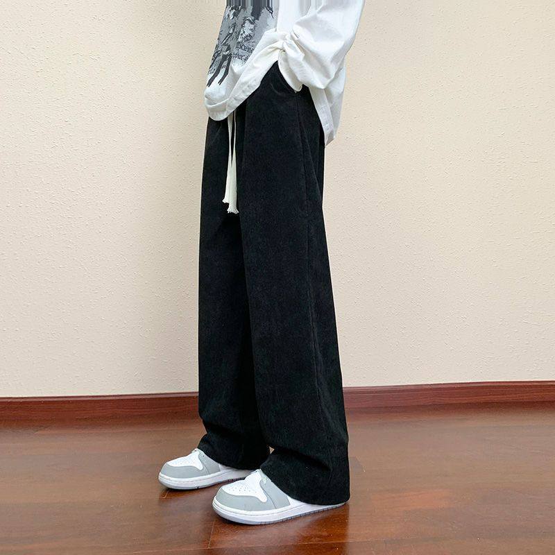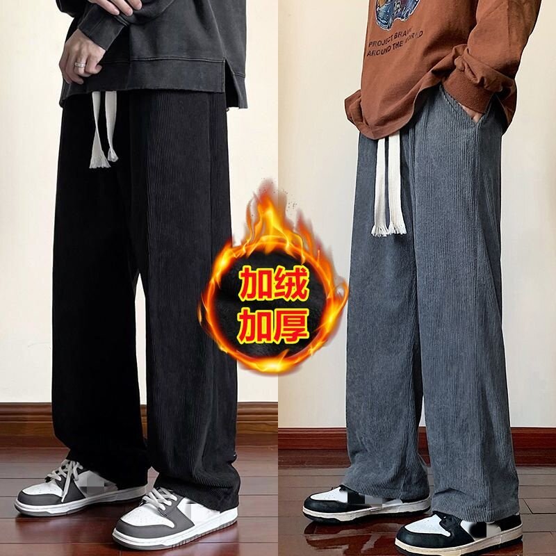 雪尼尔休闲裤男秋季直筒宽松加绒加厚冬季保暖灯芯绒男裤运动长裤