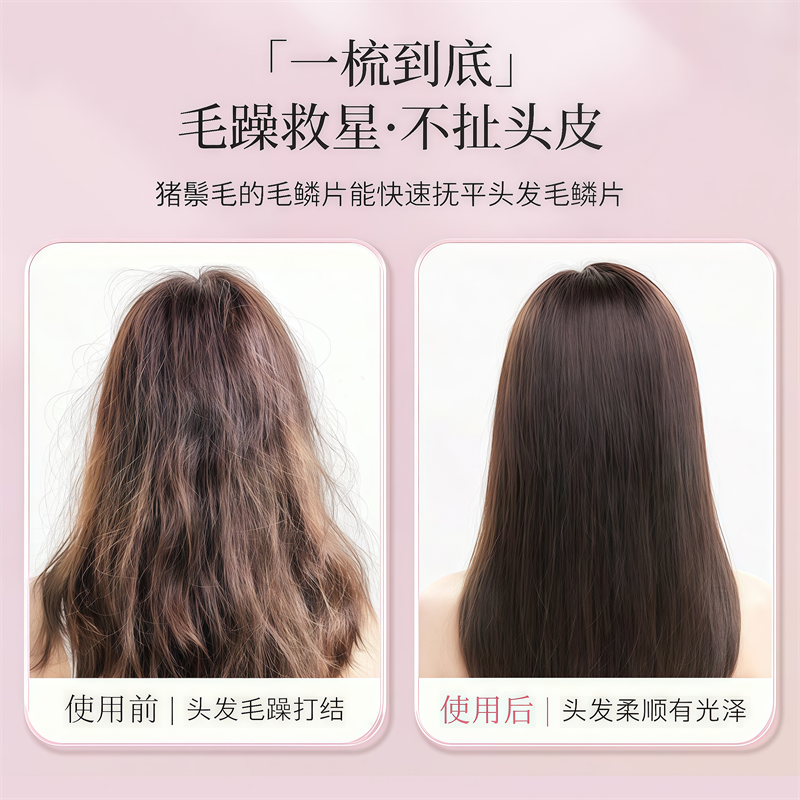 便携折叠猪鬃毛梳鬓角梳女士化妆盘发卷发蓬松造型美发打毛小梳子