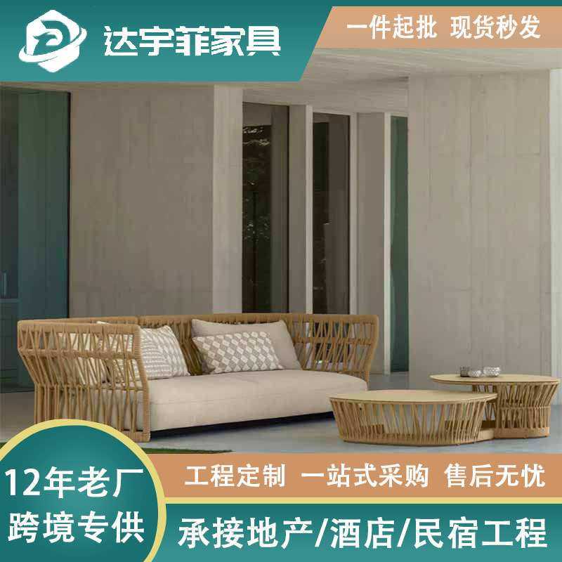 藤编沙发户外庭院复古风格餐厅桌椅系列组合花园别墅防雨防晒家具