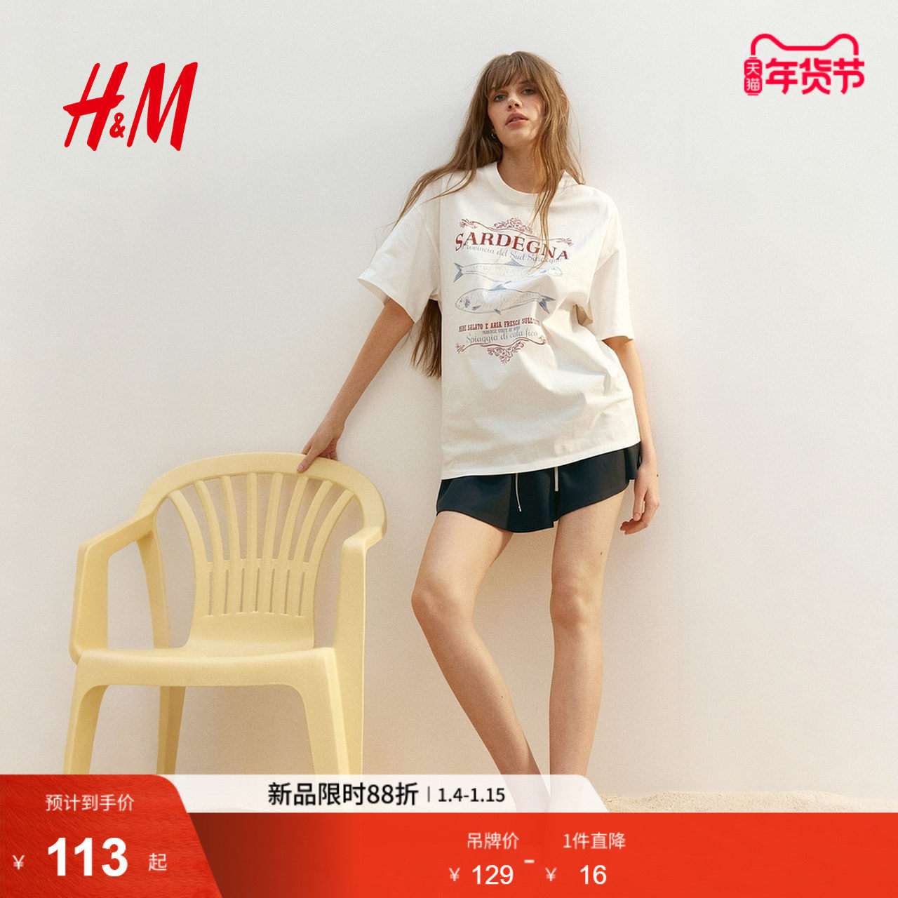 HM女装T恤冬季时尚简约潮流休闲大廓形印花T恤1296379