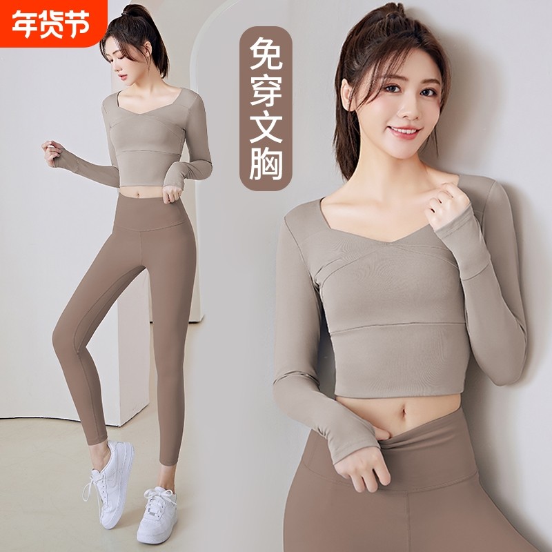 运动上衣女2025秋新款健身专业普拉提跑步紧身训练长袖瑜伽服套装