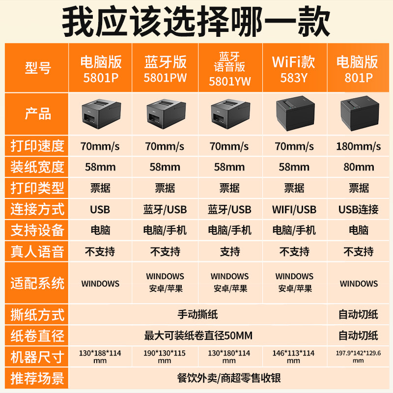 得力美团外卖打印机热敏票据接单商用语音全自动接单wifi连接蓝牙便携超市收银小型无线小票机饿了么后厨打印