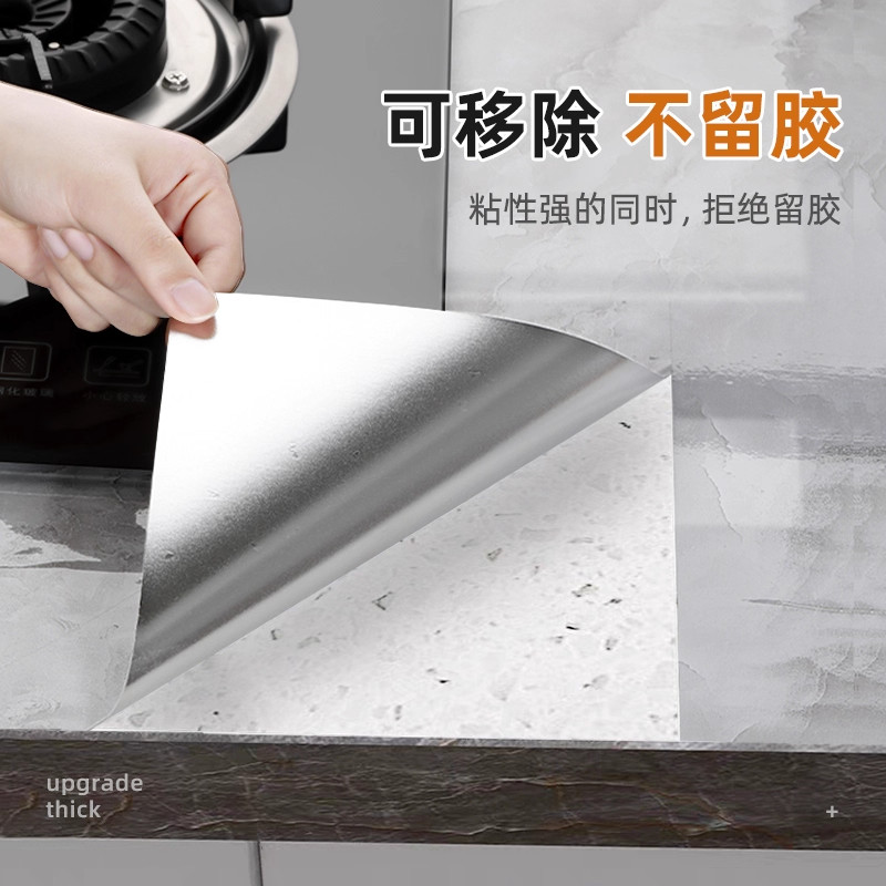 厨房防油贴纸防火耐高温灶台防水墙壁纸加厚自粘橱柜防潮铝箔锡纸