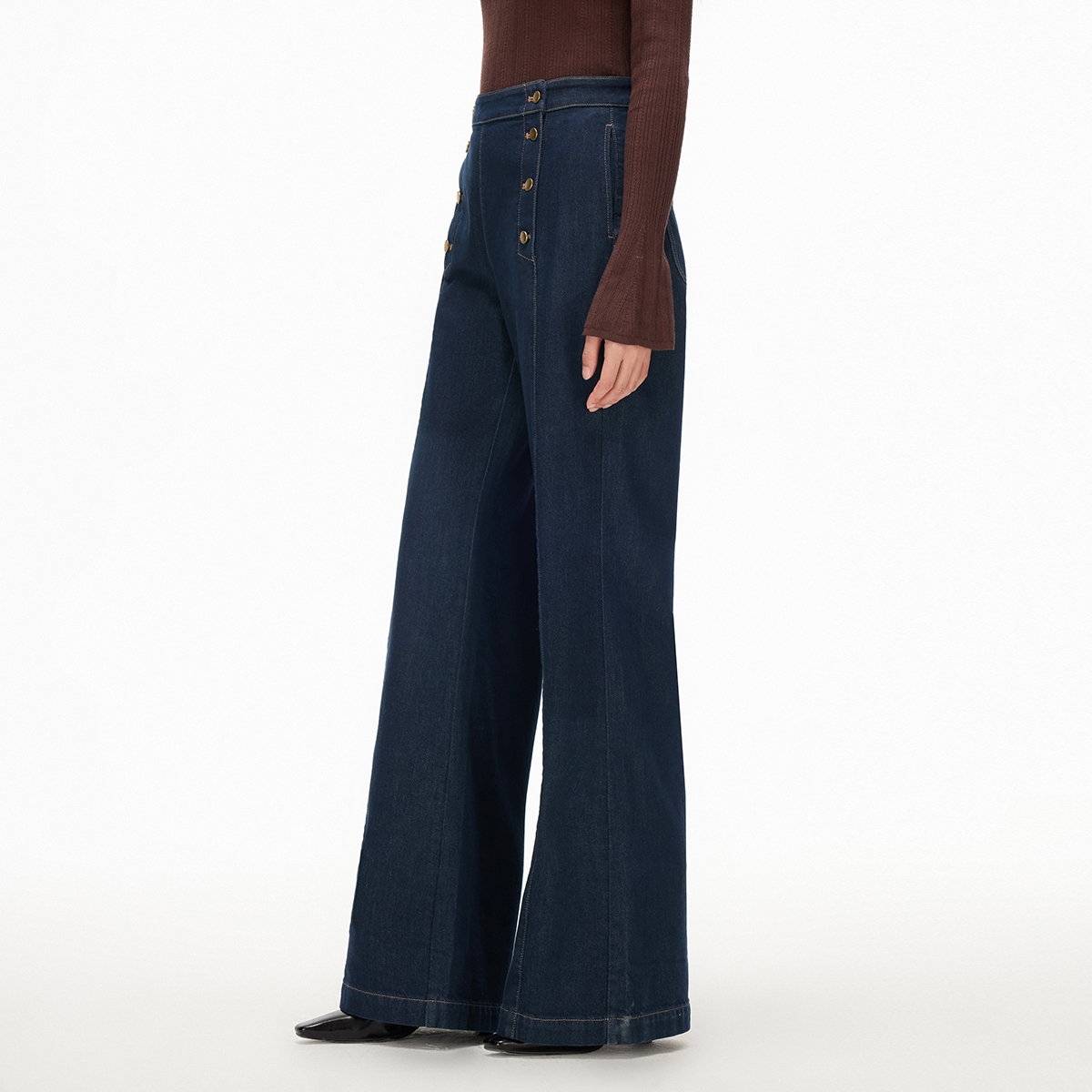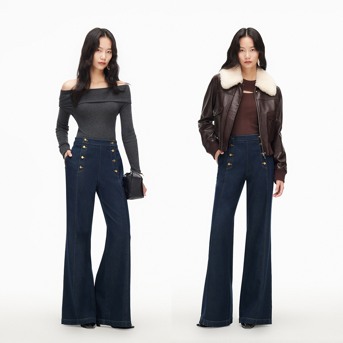 Vero Moda牛仔裤2026春季新款含棉高腰双排扣喇叭裤精致时髦通勤