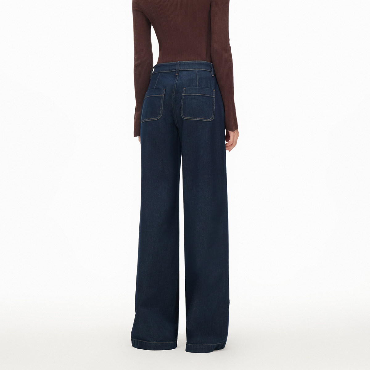 三福牛仔长裤2025新款冬季磨毛阔腿裤复古深色宽松裤子女装512304