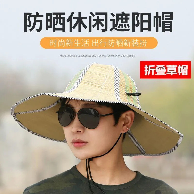 草帽帽子钓鱼帽大沿农用农民遮阳帽防雨防晒夏天可折叠大帽檐露营