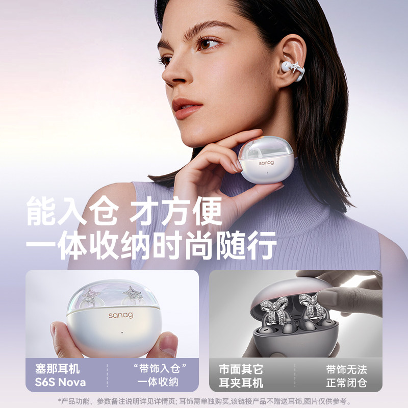 塞那S6Snova蓝牙耳机耳夹式人鱼姬2025新款无线Ai气传导运动耳机