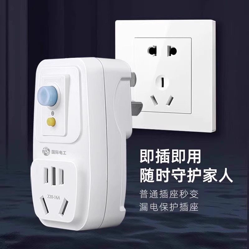 国际电工热水器漏电保护器插头插座家用空调防触电10a16a保护开关