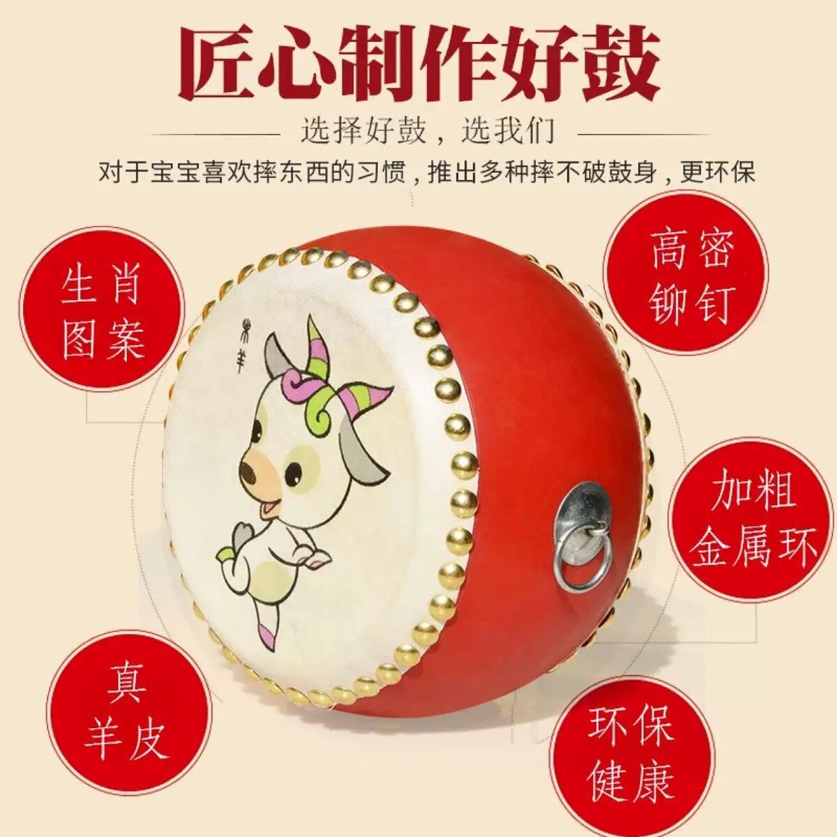 宝宝生肖鼓小鼓儿童益智玩具击鼓打鼓儿童专用鼓乐器儿童鼓幼儿园