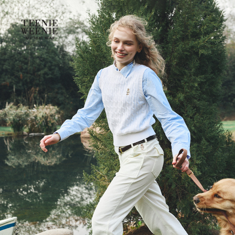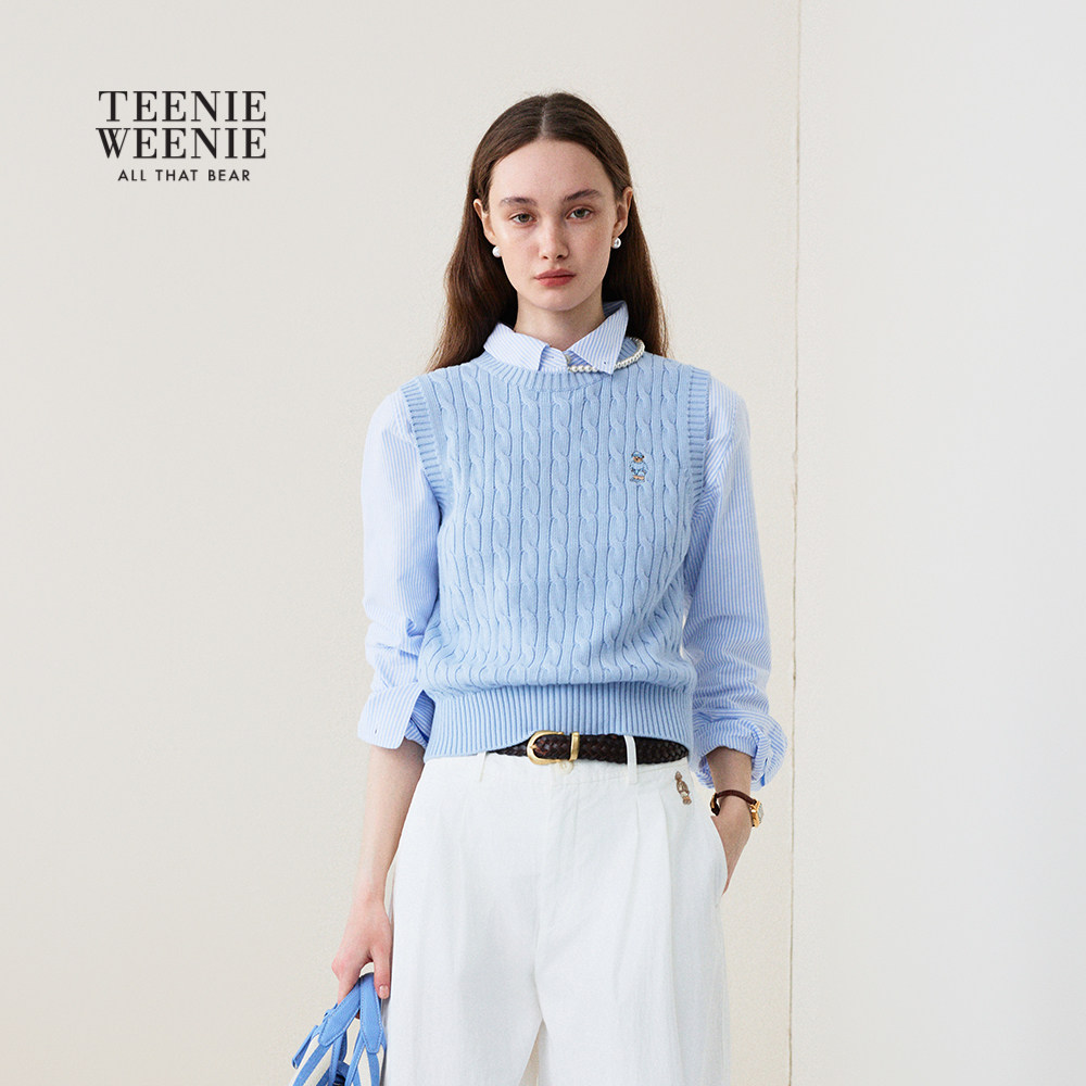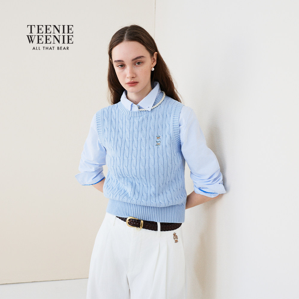 TeenieWeenie小熊女装毛针织衫26年春季新款复古绞花圆领毛衣背心