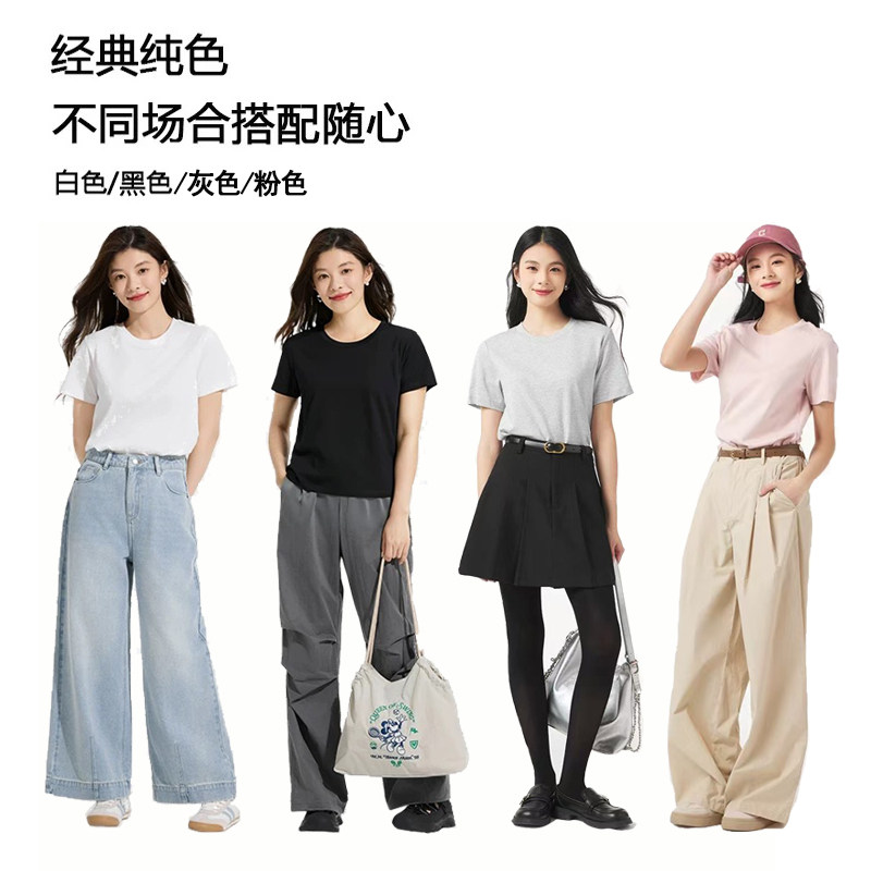 新国货100纯棉t恤女130支双面丝光棉短袖V圆领宽松大码夏季鸡心领