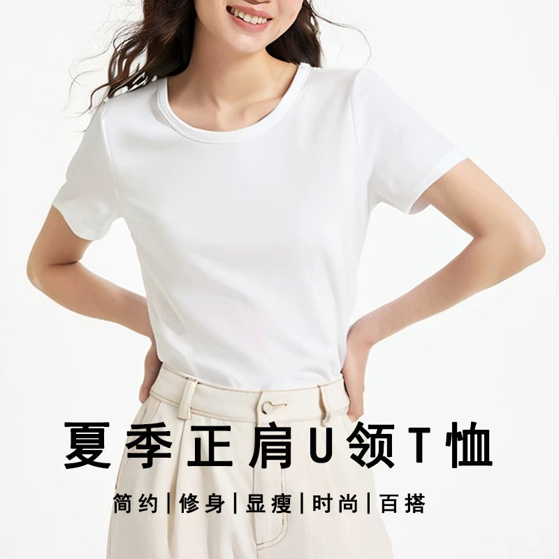unii有你夏季2025新款正肩t恤韩系宽松简约百搭休闲显瘦U领上衣