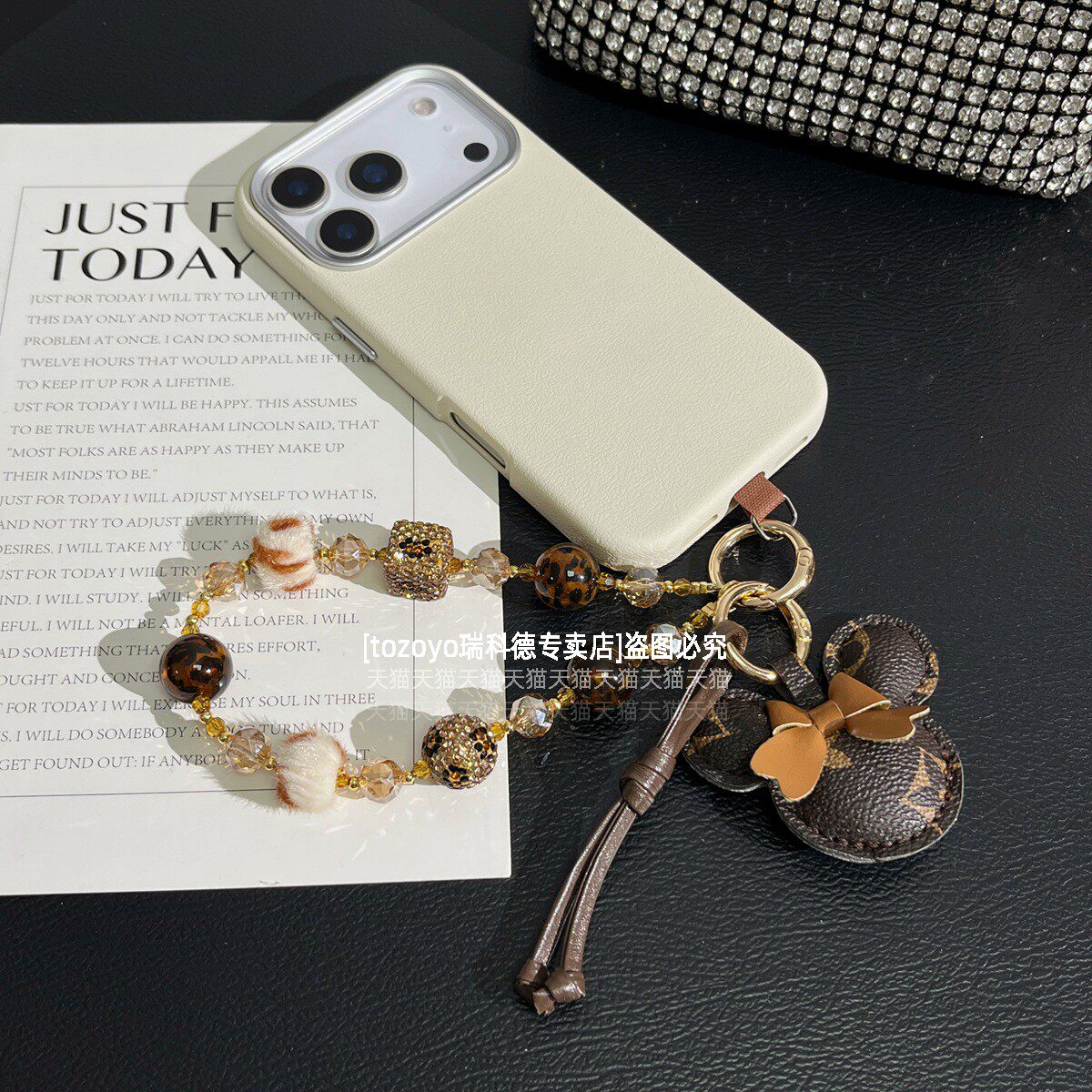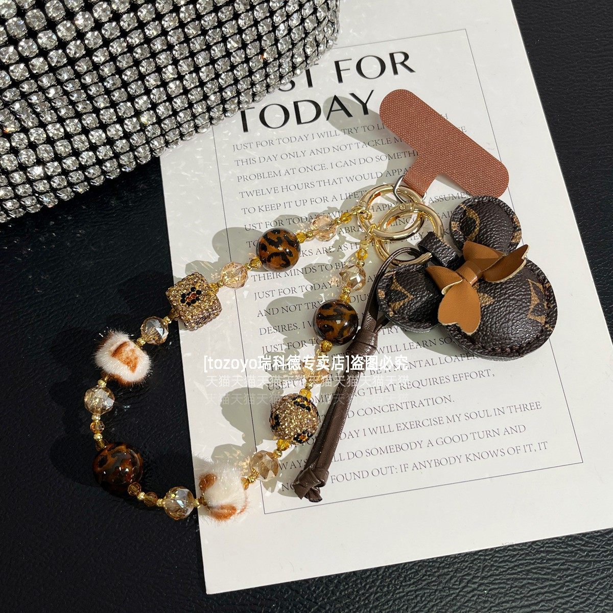 轻奢大牌手机链挂件棕色豹纹串珠手腕款链条精致闪钻毛球挂链可爱皮质公仔吊坠包包挂饰时髦高级手链绳垫片壳