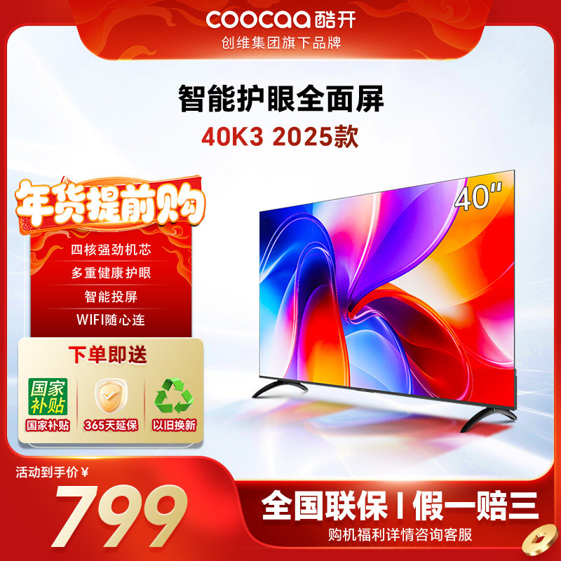 创维酷开K3 25款40英寸高清家用电视机液晶屏幕彩电官方旗舰店43