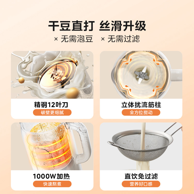 德国品质静音豆浆机家用小型多功能全自动加热免过滤破壁机果汁机