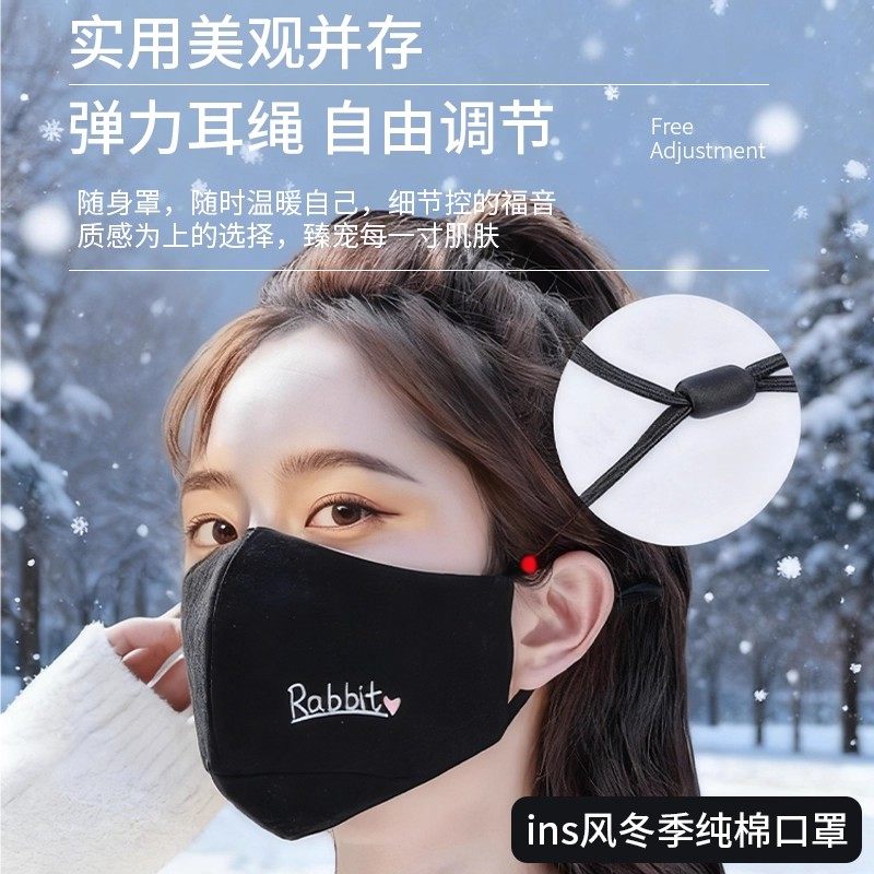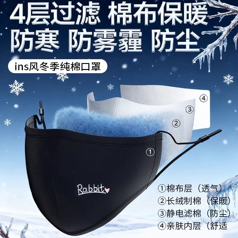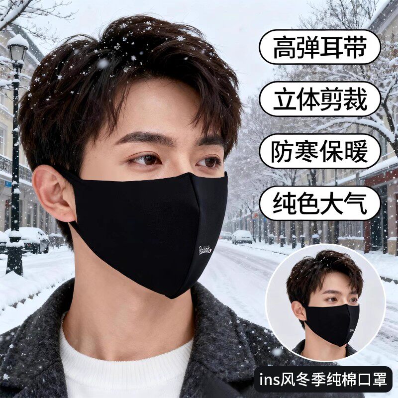 冬季纯棉棉布口罩可水洗女高颜值2025新款秋冬用防风防寒防尘黑色