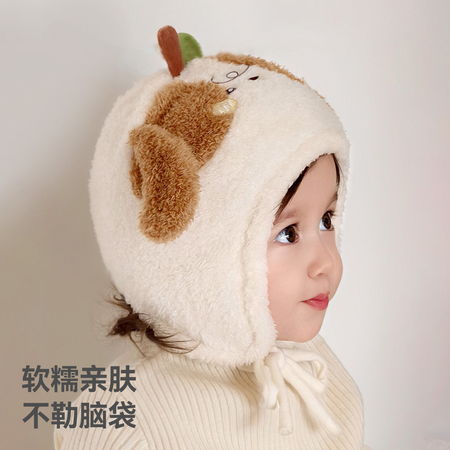 贝肽斯宝宝帽子冬季男童女孩可爱加绒护耳帽防风保暖加厚毛绒帽S
