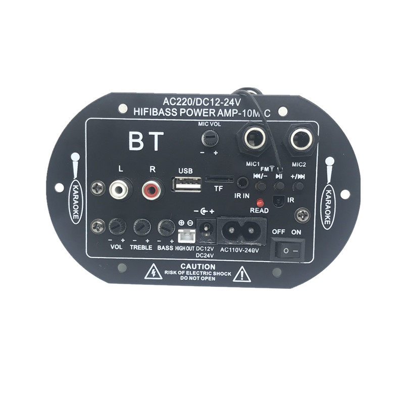 10M双话筒插孔大功率K歌蓝牙功放板 12V24V220V低音炮芯 6寸8寸