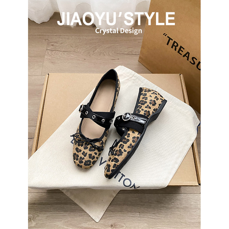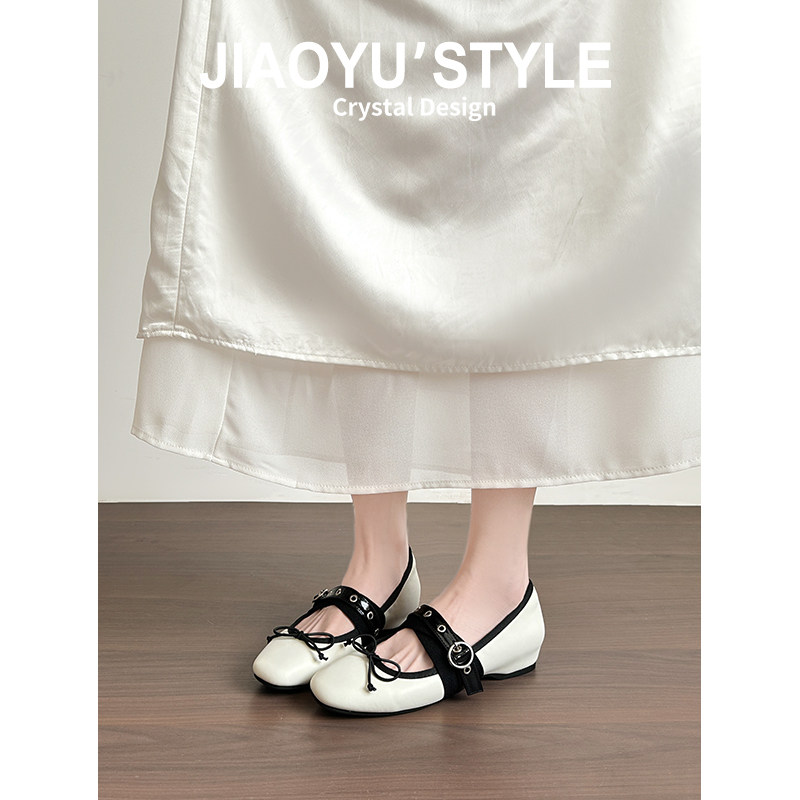 真皮~骄屿铆钉芭蕾玛丽珍鞋2026春新款蝴蝶结银色内增高朋克单鞋