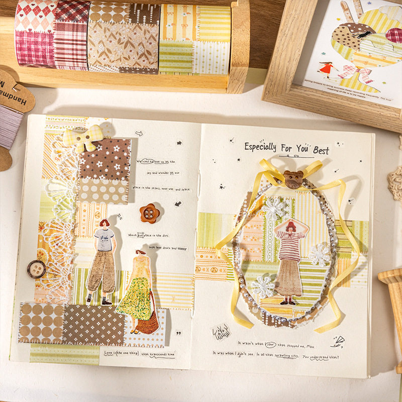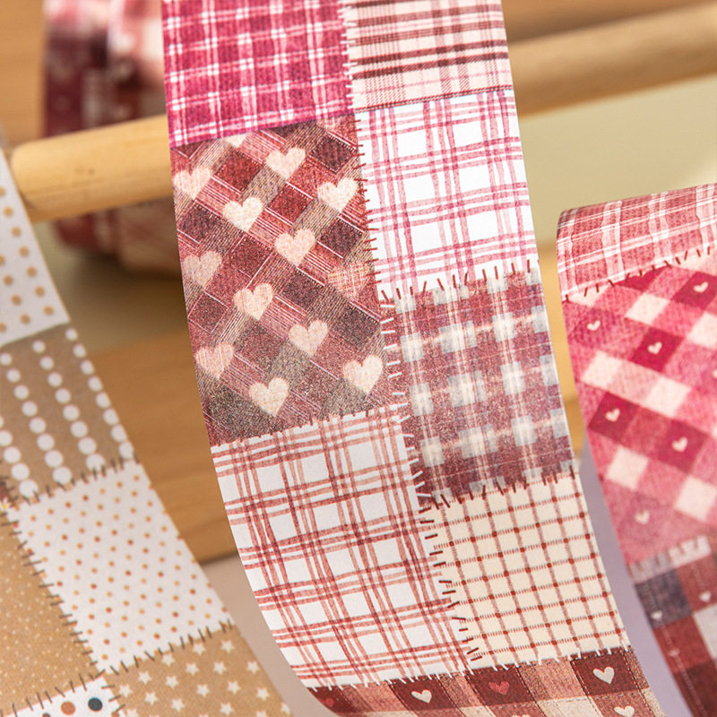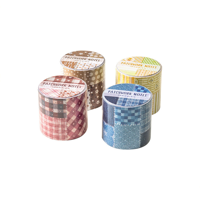 拼布碎语系列白牛皮胶带 复古网格牛仔图案手帐打底装饰拼贴素材