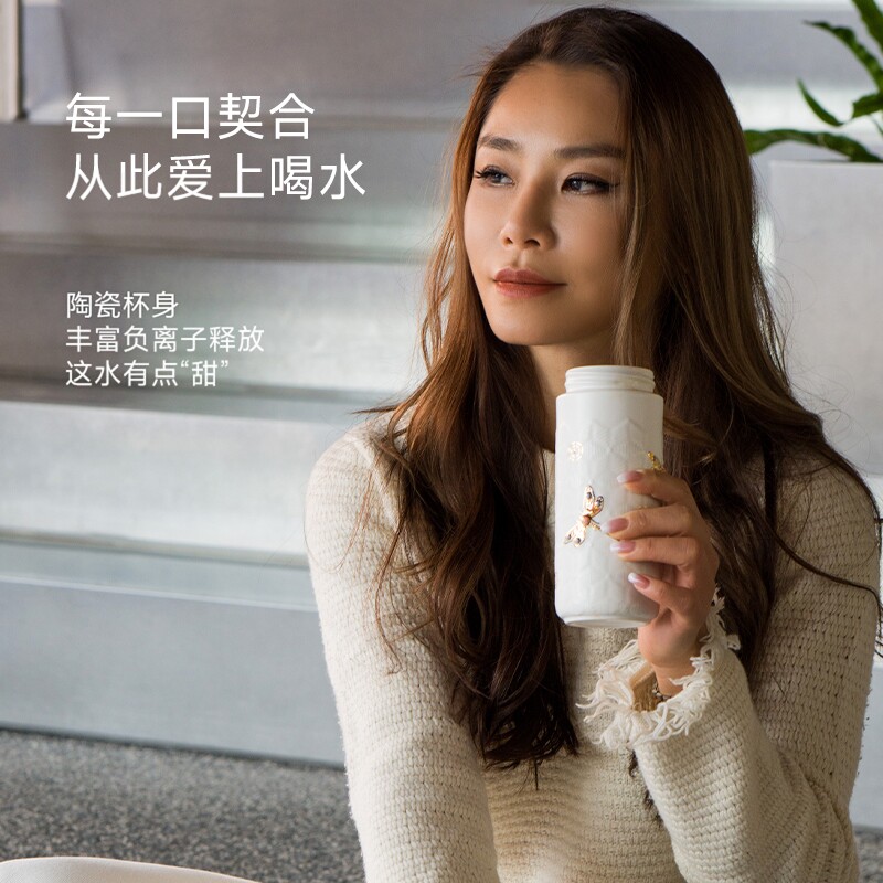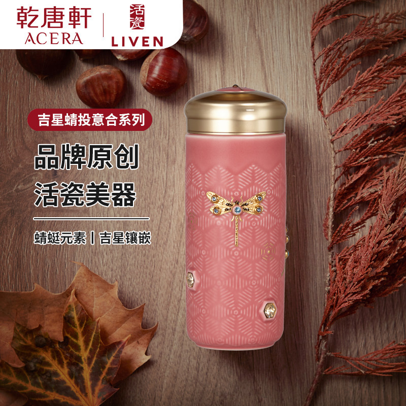 【家装节】乾唐轩活瓷蜻投意合随身杯高颜值鎏金水杯茶杯陶瓷杯