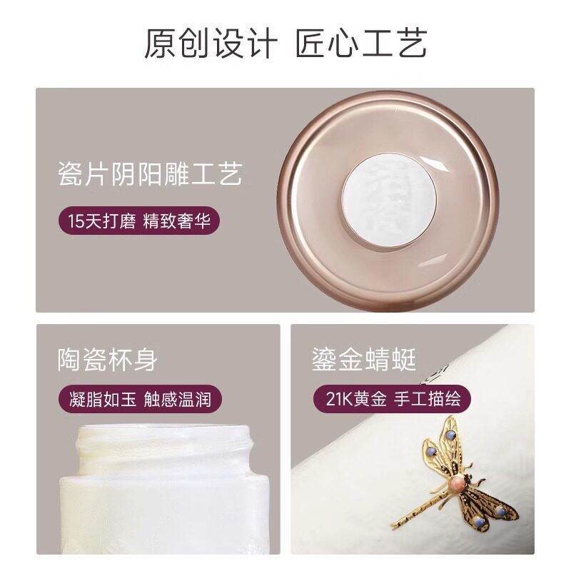 鎏金蜻蜓,陶瓷杯身,21k金,手工描绘
