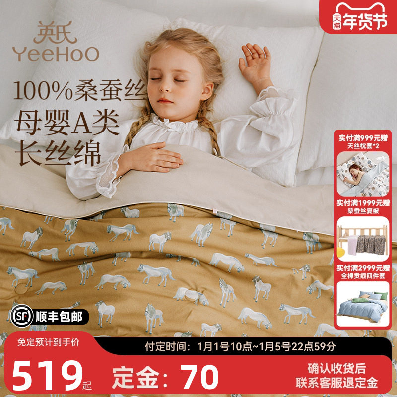 英氏儿童母婴A类100%桑蚕丝被透气秋冬被婴幼儿保暖长丝棉小被子