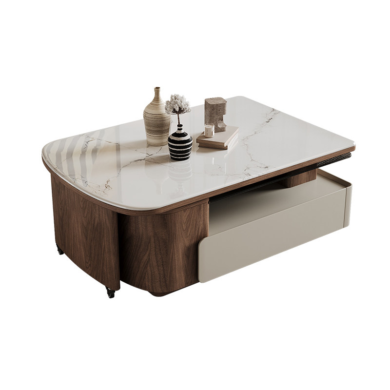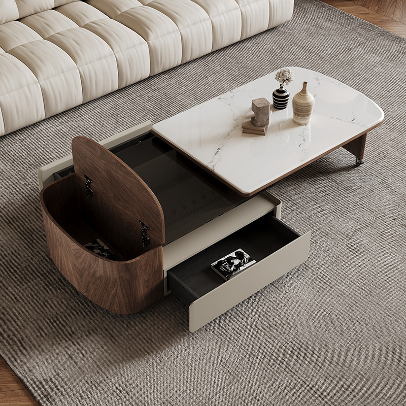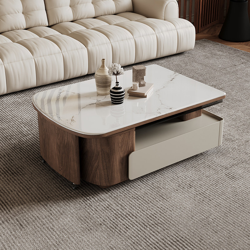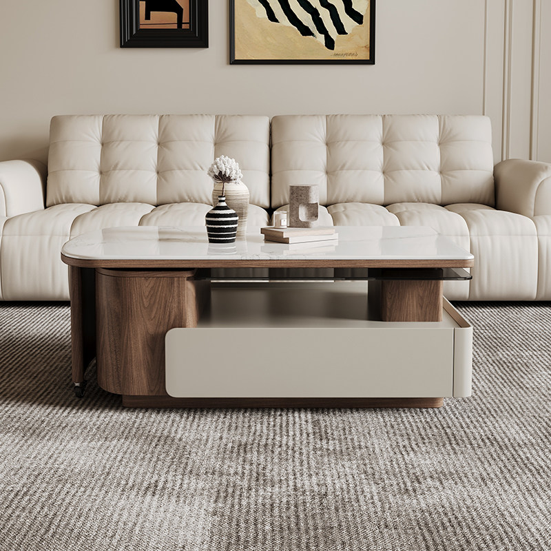中古风微晶石方形茶几现代简约客厅家用小户型多功能伸缩储物茶几