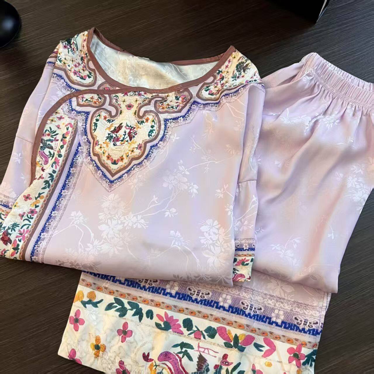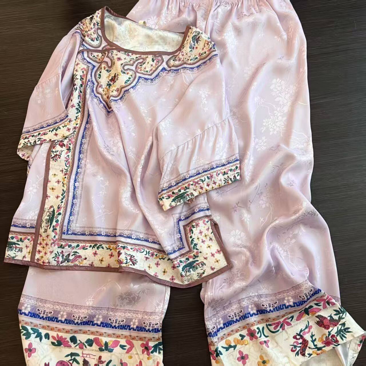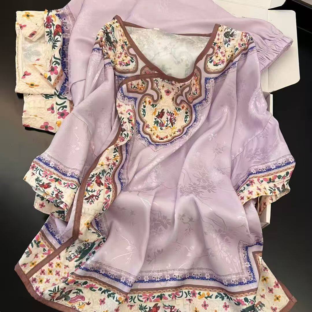 可外穿外衣提花夏季汉服国风古风女孩睡衣家居服新中式紫色金丝绒