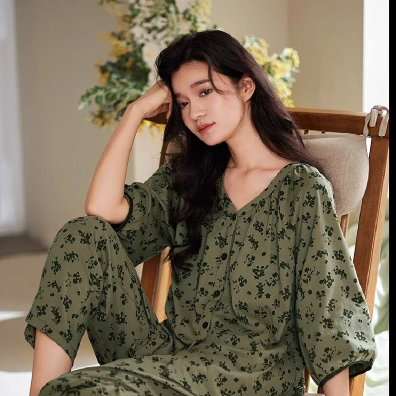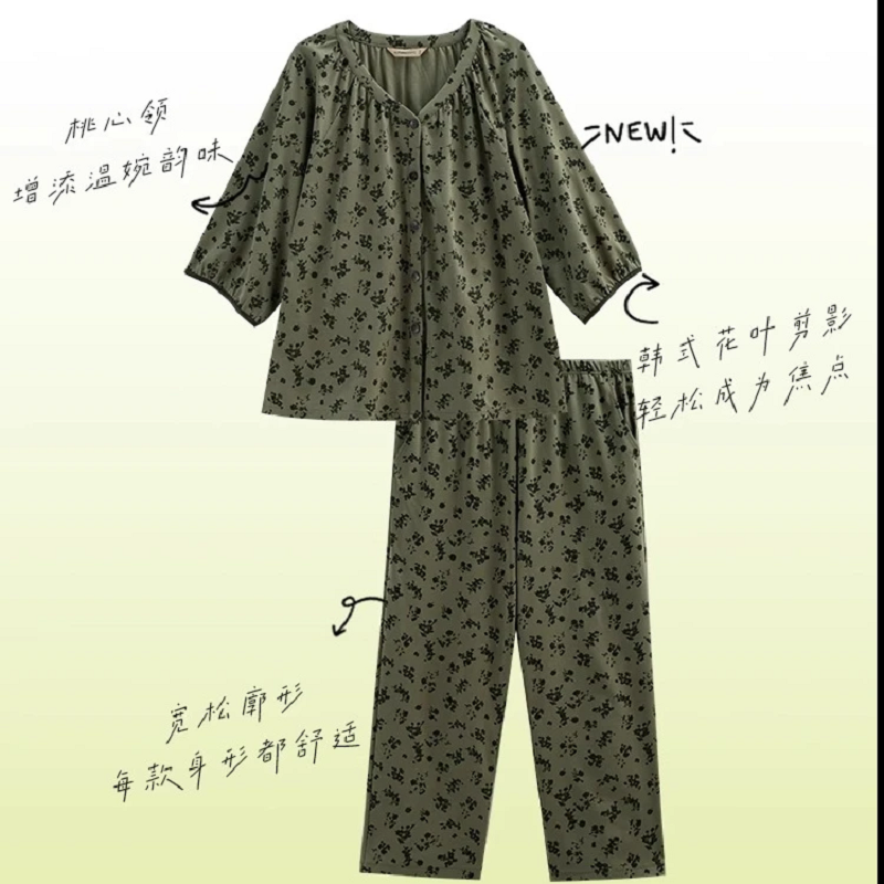 2025可外穿七分袖夏季睡衣甜美休闲套装新款大码开衫高级感家居服