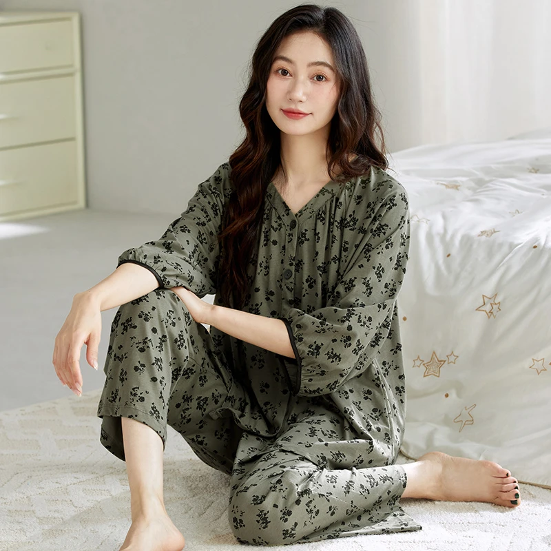 浪莎睡衣女春秋款纯棉长袖2025年新款秋冬大码薄款宽松开衫家居服