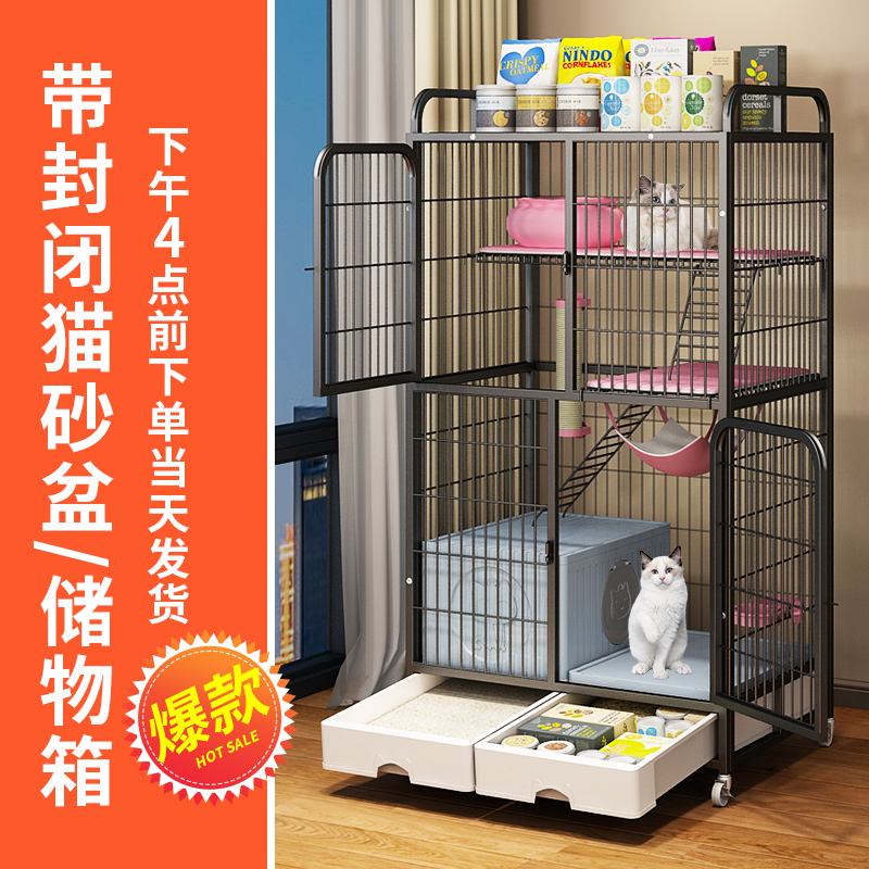猫笼子家用带厕所一体式特价三层猫咪笼子超大自由空间大号猫别墅