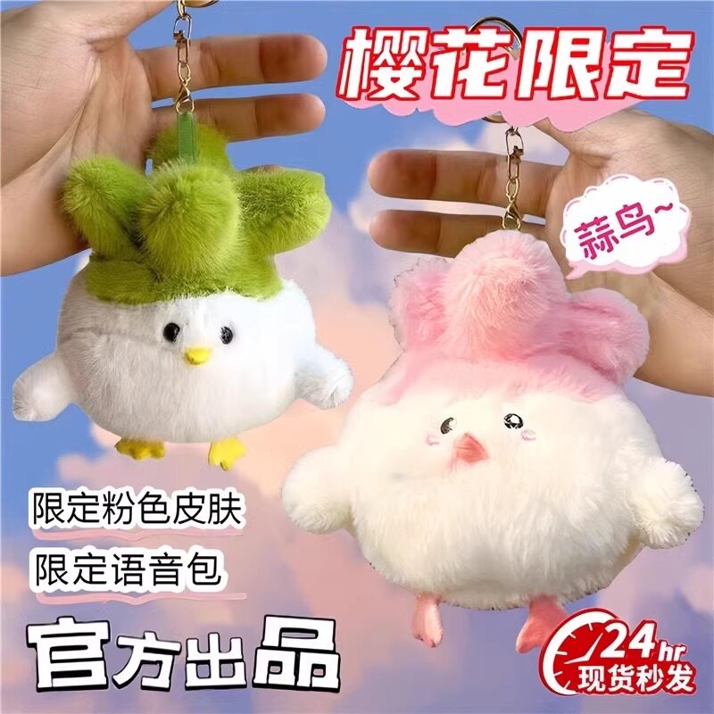 现货发声蒜鸟网红按压玩偶纪念品毛绒玩具公仔可爱创意书包挂件